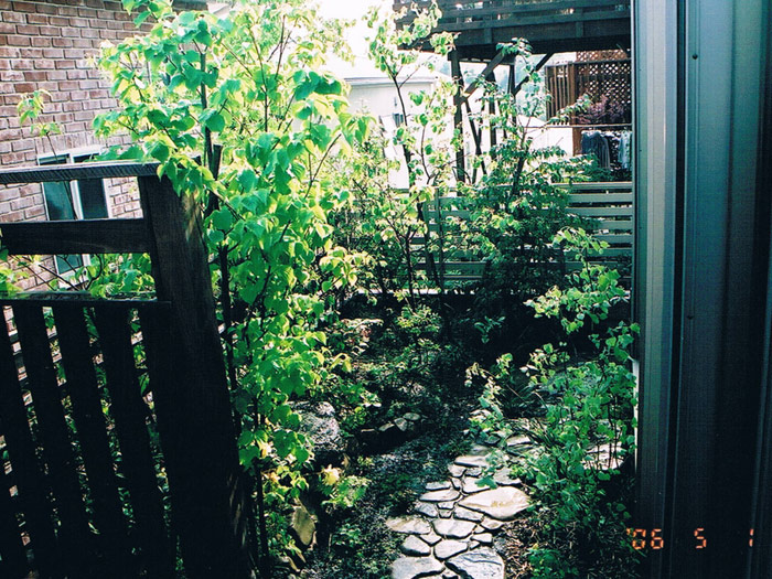 植栽 山モミジ、ザイフリボク、シロモジ、山ツツジ、アセビ 草ソテツ、ホウチャクソウ、イカリソウ、キキョウ、ヒトリシズカ、チゴユリなど