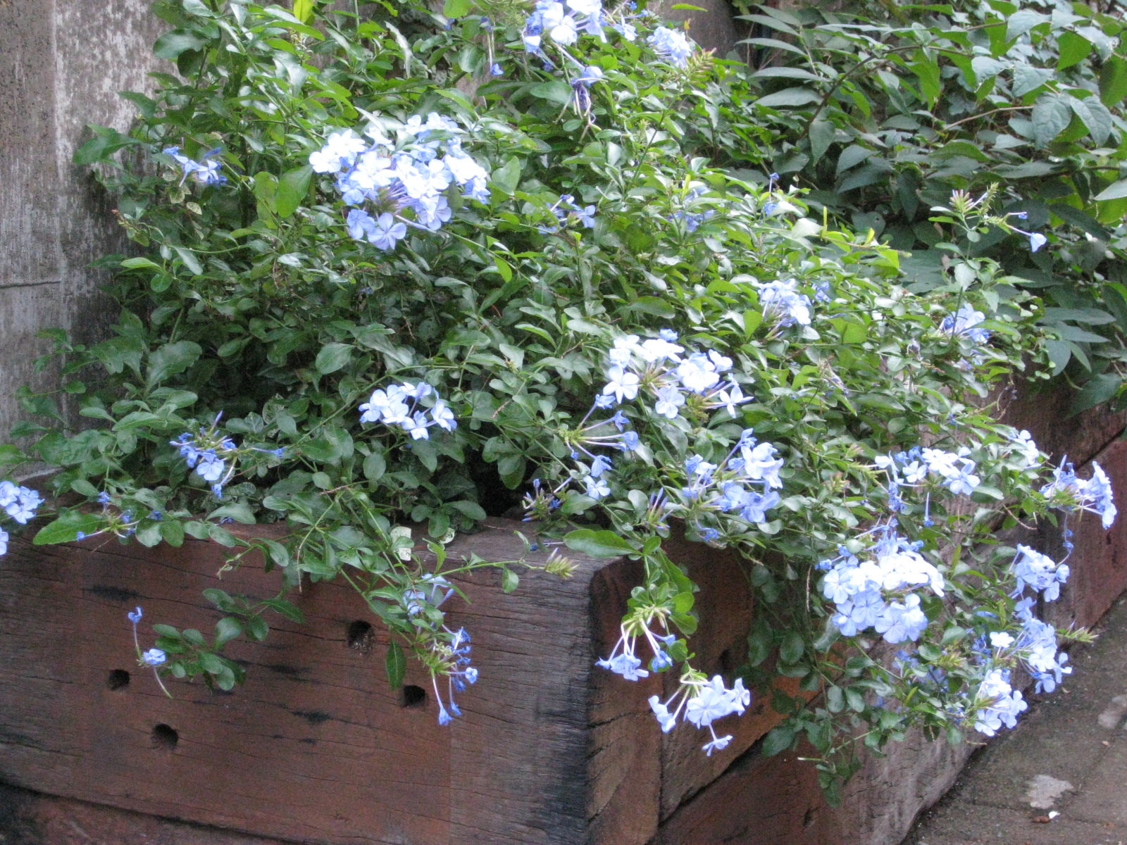 青い花はプルーンパーゴ。とてもきれいですね。