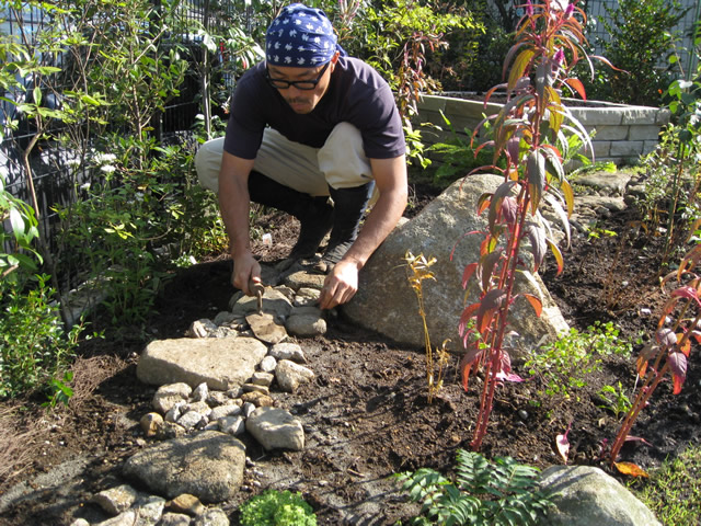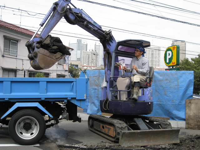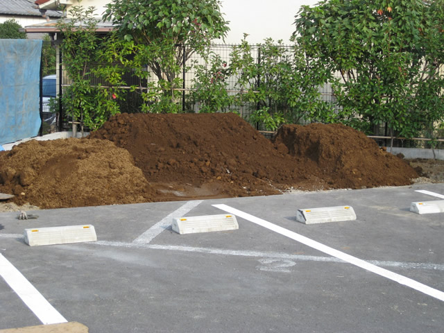 集合住宅の駐車場(アスファルト)を一部撤去して緑化します。