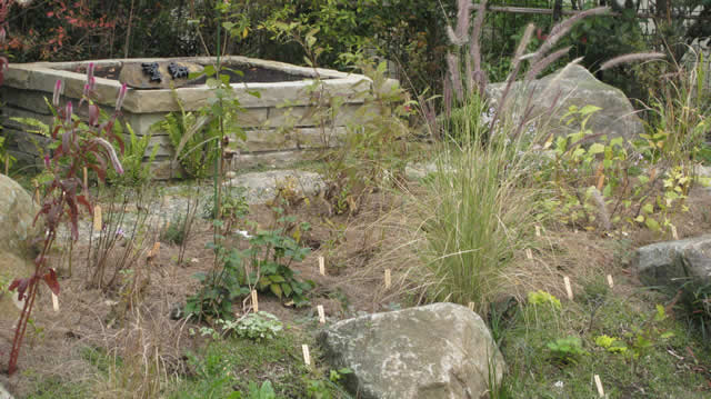 植栽は低木、下草が中心。86種類の草花を植えました。